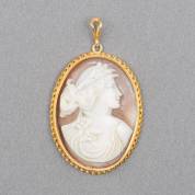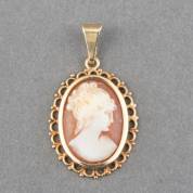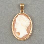 14kt gouden cameehanger met schelpcamee van damesportret, brutogewicht 3,2 gram, 3,5 cm