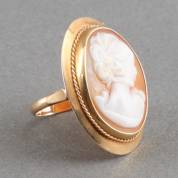 14kt gouden cameering gezet met schelpcamee met beeltenis van dame en profil, mt. 17,75, brutogewicht 6,8 gram