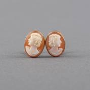 Paar 18kt gouden camee-oorclips gezet met schelpcamee met beeltenis van dame en profil, brutogewicht 5,2 gram, 1,5 × 1 cm