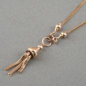 14kt roségouden collier met kwasthanger aan onedele veerring, 19e eeuw, brutogewicht 6 gram, collier 40 cm -één kettinkje van kwast afgebroken-