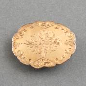 Ovale 14kt gouden broche met bloemgravering, gewicht 3,2 gram, 3 × 2,2 cm -speld onedel en gebruikssporen-