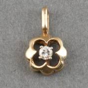 14kt gouden bloemhangertje gezet met briljantgeslepen diamantje, brutogewicht 1,2 gram, 1,5 cm