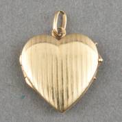Hartvormig 14kt gouden portrethanger met lijnendecor, brutogewicht 2,4 gram, 2,5 cm -gebruikssporen-