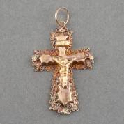 14kt geel- en roségouden kruishanger, crucifix, 19e eeuw, gewicht 2,6 gram, circa 5 × 3 cm