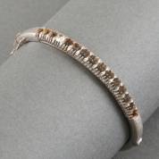 18kt witgouden stijve armband met scharnier en bakslot met veiligheidskettinkje, de bovenzijde is bezet geweest met vijftien briljantgeslepen diamanten, maar nu nog slechts één diamant, brutogewicht 16,8 gram, binnenmaat 55 mm