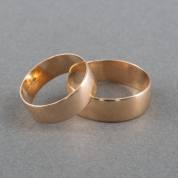 Paar brede 14kt gouden bandringen, zonder inscriptie, mt. 19,5 en 22,5, gewicht 9,6