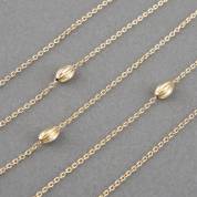 14kt gouden jasseron schakelcollier met vier geribde olijfvormige schakels, gewicht 5,6 gram, 78 cm