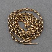 14kt gouden horlogeketting van ankerschakels aan onedele musketonhaak, brutogewicht 9,0 gram, 158 cm
