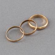 Drie 14kt gouden bandringen met inscriptie, mt. 17, 17,75 en 20,75, gewicht 8,2 gram