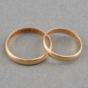 Paar 14kt gouden bandringen met inscriptie, mt. 19,75 en 17, gewicht 4,2 gram
