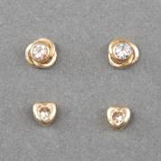 Twee paar14kt gouden oorstekers, beide gezet met simuli, brutogewicht 2,0 gram, circa Ø 4 mm