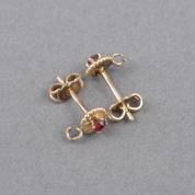 Paar 14kt gouden oorstekers gezet met granaat, met open oogje voor hanger, brutogewicht 1,8 gram, Ø 6 mm