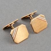 Paar 14kt tricolor gouden manchetknopen, gewicht 8,4 gram, 1,6 × 1,4 cm