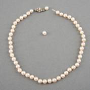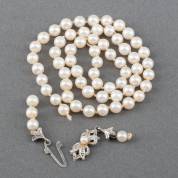 Parelcollier van gecultiveerde parels, aan 2e gehalte zilveren slot gezet met parel en simuli, 40 cm