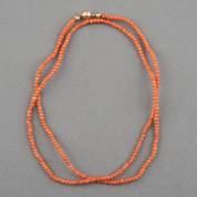 Bloedkoralen kralencollier, aan 14kt gouden gegraveerd bolslot, 86 cm -collier erg strak geregen-
