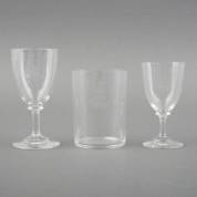 Drie verschillende drinkglazen met geëtst helmteken van de familie Van Loon, hoogte wijnglas 12,5 cm