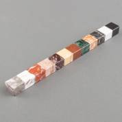 Langwerpige 'specimen marble' presse-papier, opgebouwd uit twaalf diverse soorten marmer, 30 × 2,5 × 2 cm