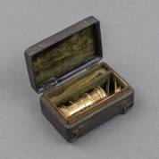 Messing zakmicroscoop met schroefmechaniek Engeland, in origineel segrijnbekleed foedraal, 18e eeuw, microscoop 4,5 cm