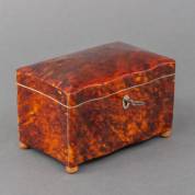 Gecontourneerde schildpad theedoos met twee compartimenten in het interieur, 19e eeuw, 9,5 × 14 × 9,5 cm