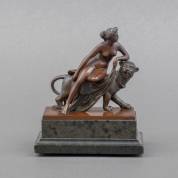 Bronzen beeldje: Ariadne op panter, op natuurstenen basement, 13,5 × 11,5 × 6,5 cm inclusief basement