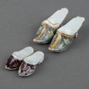 Twee paar Delfts aardewerk schoentjes, 18e eeuw -van elk paar is één schoen gelijmd, randchips-, lengte 11 en 7 cm