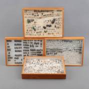 Vier dozen met geprepareerde libelles, cicaden, boktorren en mestkevers, 40 × 30 × 5 cm