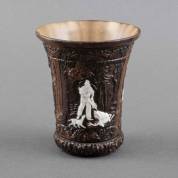 Deels bruingeglazuurde beker met jachtdecor, onderdeel van het Krickerlservies voor de Oostenrijkse Keizerlijke jachtsloten, 19e eeuw -wat bijgewerkte randschilfers-, 11 × Ø 9 cm