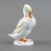 Porseleinen beeld in de vorm van een eend, gemerkt, uitvoering Meissen, hoogte 14 cm