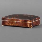 Rechthoekig schildpad lepeldoosje, 19e eeuw -stickerresten-, 5 × 15 × 10 cm