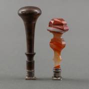 Houten cachet met initialen J.S., en cachet met agaten heft en initialen M.J.S., 19e eeuw, grootste exemplaar 8,5 cm