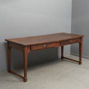 Kastanjehouten tafel met twee lades onder het blad, Engeland, 19e eeuw -chip van poot, gebruikssporen-, 78 × 185 × 80 cm