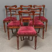 Zes palissander stoelen met bordeauxrode velours bekleding, Restoration/Louis Philippe -restauraties-