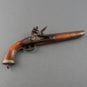 Marine vuursteenpistool met aan de platte kolfplaat een oog voor een bevestigingstouw, Luik, begin 19e eeuw -slot blijft niet goed open staan-, lengte 39 cm