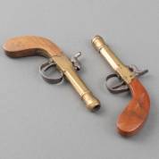Paar zeer gelijkende percussiepistooltjes met messing lopen, Luik, midden 19e eeuw, lengte 16 cm
