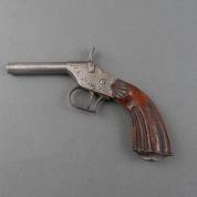 Percussiepistooltje met twee draaibare getrokken lopen, midden 19e eeuw -sterk geoxideerd-, lengte 18 cm