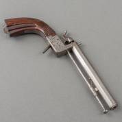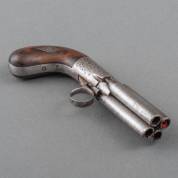 Vierloops 'pepperbox', percussiepistooltje met gedamasceerde lopen en gegraveerd bloemdecor, niet gemerkt, midden 19e eeuw, lengte 17,5 cm