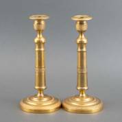 Paar vergulde messing kandelaars, empire -enkele kleine defecten-, 27 × Ø 12 cm