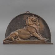 Bronzen plaquette: 'Leeuw van Belfort', gepatineerd, naar Frédéric Auguste Bartholdi, 13 × 21 cm