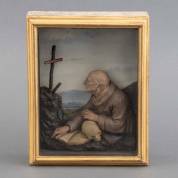 Kijkdoos met wassen reliëf van Sint Bruno, mogelijk Casper Bernard Hardy (1726-1819) -lijmresten- 24 × 19 cm