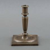 Messing kandelaar met achthoekige baluster in de stam, op vierkante voet, Spanje, 18e eeuw -klein scheurtje in voet-, 16 × 11 × 11 cm