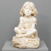 Marmeren beeld: kind in kleermakerszit, met opschrift 'Se Sapeste', tweede helft 19e eeuw -defect bij tenen-, 54 × 36 × 41 cm