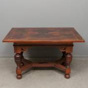 Palissandergefineerde kruispoottafel met ingelegd blad en onder het blad een lade, eind 19e/begin 20e eeuw, herkomst: gemaakt in opdracht van Jakob Kraus (1861-1951), Nederlands waterbouwkundige, hoogleraar en minister van Waterstaat, 73 × 117 × 77 cm