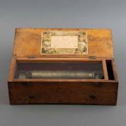 Zwitserse cilinderspeeldoos met zes melodieën, tweede helft 19e eeuw -beetje vals-, 12 × 40 × 16 cm