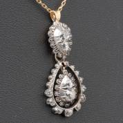 14kt gouden en 2e gehalte zilveren collier van zilveren jasseronschakels met middenvoor een 14kt gouden en zilveren hanger gezet met 22 roosgeslepen diamanten en geelgetinte druppelvormige roosdiamant gezet in dichte zilveren zetting, brutogewicht 9,2 gram, 45 cm