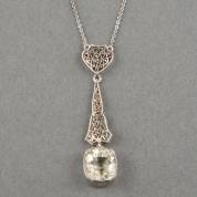 Zilveren anker schakelcollier met middenvoor een zeer fijn opengewerkte hanger gezet met een kussengeslepen licht getinte spinel, brutogewicht 4,6 gram, circa 45 cm