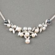 14kt witgouden choker, deel voor gezet met witte, grijze en zwarte gecultiveerde parels, brutogewicht 22,0 gram, 44 cm