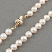 Parelcollier van gecultiveerde parels aan geribd 14kt gouden bolslot, circa 63 cm