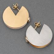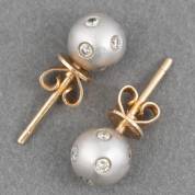Paar 18kt geel- en witgouden oorstekers met mat witgouden bol, elk gezet met negen briljantgeslepen diamanten geïncrusteerd gezet, brutogewicht 2,6 gram, Ø 6,7 mm