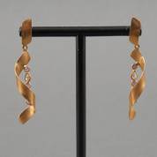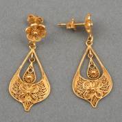 Paar 20kt gouden filigrain oorhangers gewicht 5,6 gram, 4 cm -stukje filigrain ontbreekt uit een rozet-