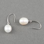 Paar 1e gehalte zilveren oorhangers waaraan gecultiveerde parels